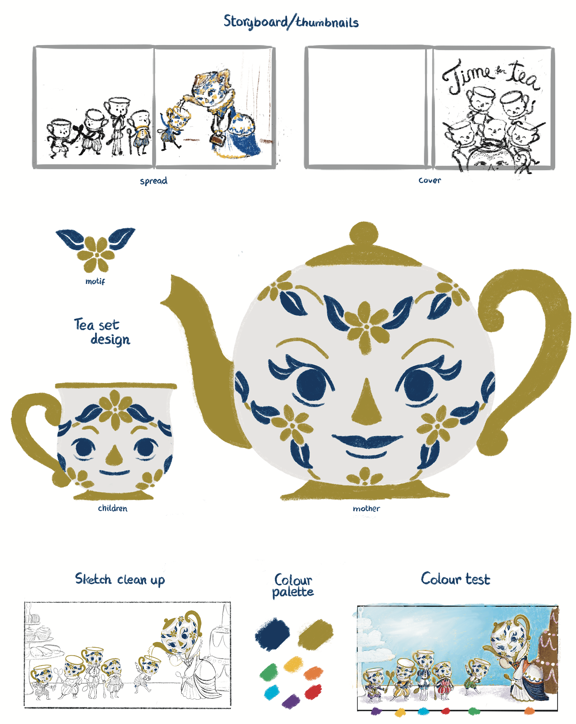 Originally made for the Post Wave Award over the span of a week, the illustrator must present a spread and a cover with the theme the publisher had provided - "Time for tea".